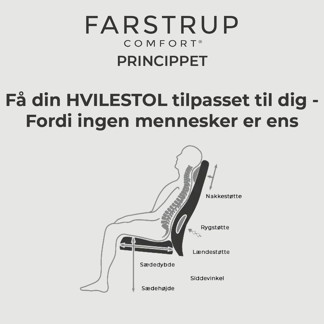 Hos Farstrup skræddersyr vi din hvilestol efter dine ønsker og krav til funktioner.