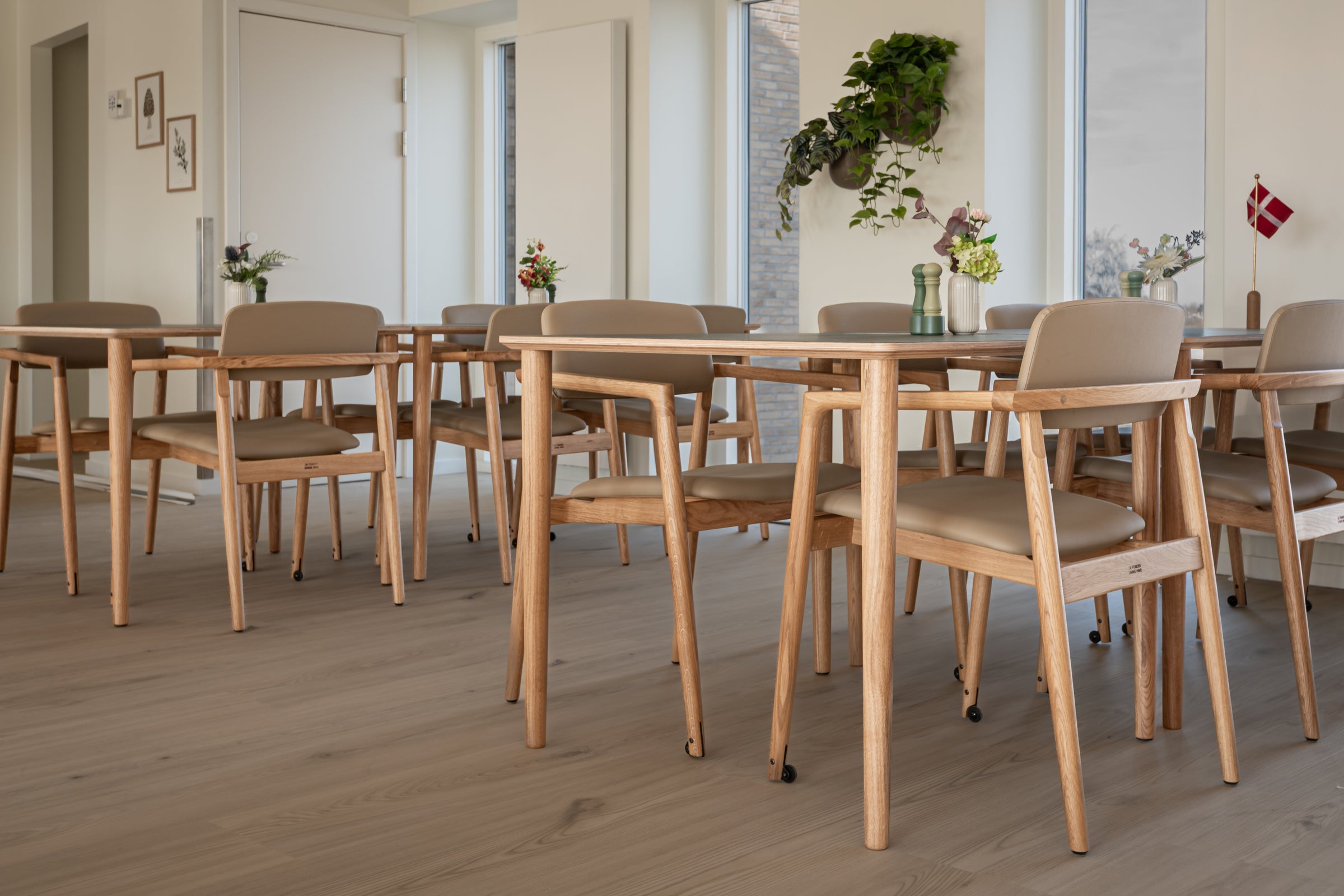 Med fokus på komfort, kvalitet og tidløst design er der skabt lyse, rolige og moderne omgivelser, hvor beboere, pårørende og personale kan mødes i en god atmosfære.
