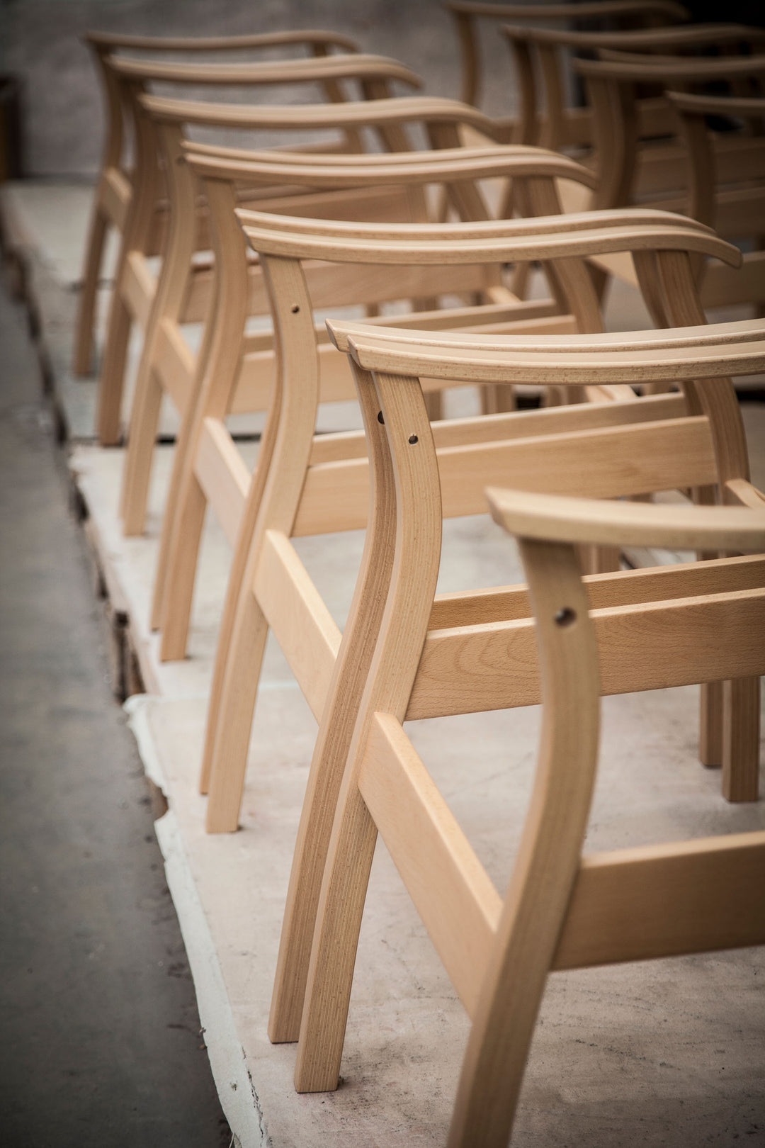 Das „Gestell“ des Stuhls wird zum Lackieren geschickt, wo es mit einem Schutzlack lackiert wird, der gleichzeitig die natürliche Maserung und Struktur des Holzes hervorhebt.